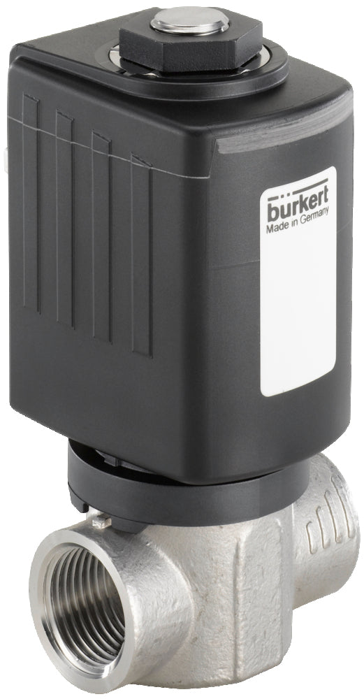 Dies ist ein Burkert semi-direkt arbeitendes 2/2-Wege Magnetventil mit G 3/8 Zoll Gewinde und einer 24 V DC Spule. Das Ventil hat ein Edelstahlgehäuse mit FKM-Dichtung und eine Durchlassgröße von 6 mm. Die Schaltfunktion des Magnetventils ist normalerweise geschlossen, was bedeutet, dass das Ventil öffnet, wenn Spannung angelegt wird. Da es semi-direkt arbeitet, ist kein Druckunterschied über das Ventil erforderlich, um das Ventil zu öffnen. Geeignet für einen Druckbereich von 0 bis 16 bar (232 psi) und eine maximale Temperatur von 140 °C (284 °F). Das Ventil hat einen Kv-Wert von 0,6 m3/h, was einem Durchfluss von 10 l/min bei einem Differenzdruck von 1 bar (für Wasser) entspricht. In imperialen Einheiten: Cv = 1, was bedeutet 1 GPM @ 1 psi Druckabfall. Für viele Anwendungen reicht es aus, ein Ventil basierend auf der Gewindegröße und dem Durchmesser der Öffnung auszuwählen. Für eine genauere Dimensionierung verwenden Sie den Kv-Wert mit unserem benutzerfreundlichen Ventil-Dimensionierungsrechner. Das Edelstahlgehäuse ist sehr langlebig, stark und beständig gegen eine Vielzahl von Chemikalien, mit Ausnahme von Chlorlösungen. Die FKM-Dichtung (Fluorkautschuk oder Viton) hat hervorragende chemische Eigenschaften, ist für die meisten Öle und Lösungsmittel geeignet, kann jedoch kein heißes Wasser oder Dampf vertragen. Bitte beachten Sie, dass die internen Ventilteile, wie der Edelstahlplunger und die Federn, ebenfalls mit dem Medium in Kontakt kommen und chemisch kompatibel sein müssen. Konsultieren Sie unser Chemische Beständigkeits Diagramm, um die Kompatibilität von Gehäuse und Dichtungen mit dem Medium zu überprüfen. Das Ventil hat eine IP65-Klassifizierung, wenn es ordnungsgemäß angeschlossen ist.