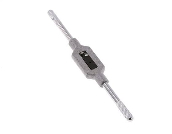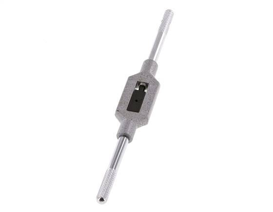 Dies ist ein verstellbarer Schraubenschlüssel für Gewindebohrer der Größe 1, der zum manuellen Gewindeschneiden verwendet wird und für Gewindebohrer von M1 bis M10 geeignet ist.