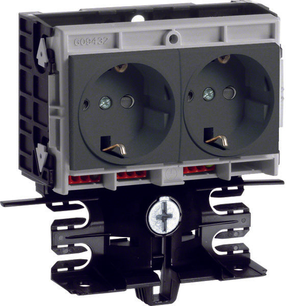 Hager Tehalit SL Aufputz-Sockelkanal, Kunststoff, Höhe Sockelkanal 55mm, Tiefe Sockelkanal 20mm, 2 Geräteeinheiten, bestückt mit Wandsteckdose mit Sicherheitskontakt, Montageart bereits vorgesehen, halogenfrei, RAL-Nummer 9011, Anschlusspunktausführung. WCD.