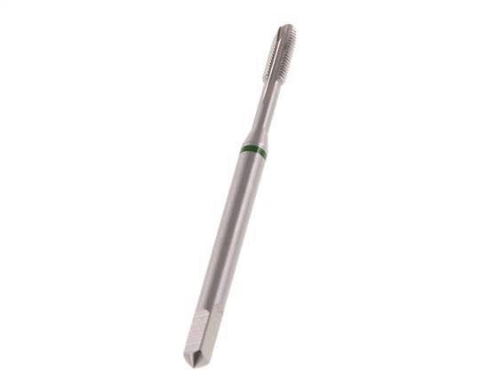 Dies ist ein Maschinengewindebohrer für metrische M3-Durchgangsgewinde. Er hat einen 3,5 mm langen Schaft und einen 10 mm langen Gewindeschneider.