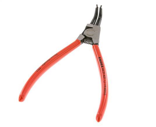 Dies ist ein Paar hochwertige Knipex Zangen mit gewinkeltem Außen-Sprengring. Er ist zum Entfernen von Sprengringen von 19 bis 60 mm langen Wellen bestimmt. Sie besteht aus Chrom-Vanadium-Stahl mit rutschfesten, kunststoffbeschichteten Griffen. Ausführung nach DIN 5256 Form B.