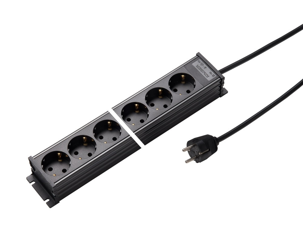 Die Martin Kaiser 1102 ist eine Kombisteckdose mit sechs geerdeten Steckdosen, die für die Verwendung in Innenräumen konzipiert ist und die Schutzart IP20 aufweist. Es verfügt über ein 1,5 m langes Kabel, einen 45°-Eckstecker und einen Kabelquerschnitt von 1,5 mm². Die Buchse hat eine rechteckige Form und ein mattschwarzes Kunststoffgehäuse. Die Ausrichtung der Buchse ist für ein einfaches Einstecken verdreht. Er arbeitet mit einer Spannung und einem Strom von 250 V bzw. 16 A. Das Gerät enthält außerdem eine Halterung für eine einfachere Installation.