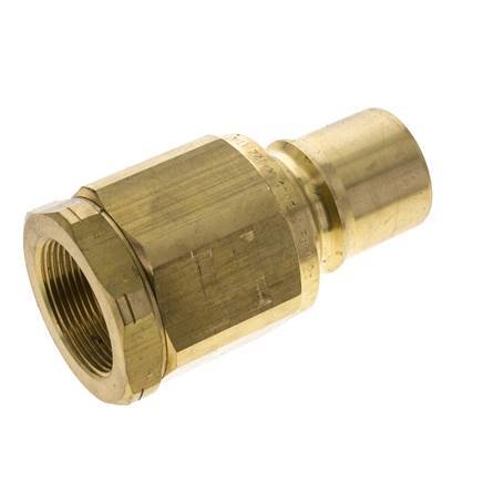 Hydraulikkupplungsstecker aus Messing DN 40 mit 1 1/2 Zoll NPT-Innengewinde. Der maximale Betriebsdruck beträgt 100 bar (1450 psi). Die Kupplung ist für Temperaturen von -25 bis 160 °C (-13 bis 320 °F) geeignet. Die Kupplung entspricht der ISO 7241-1 B.