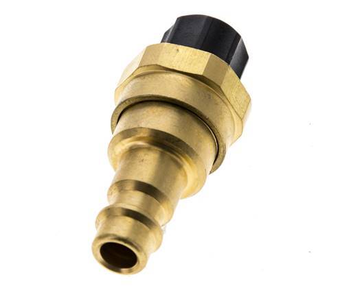 Luftanschlussstecker aus Messing DN 7,2 (Euro) mit Überwurfmutter für 6x8 mm Schläuche. Der Stecker ist mit einem Rückschlagventil ausgestattet. Der Betriebsdruckbereich beträgt 0,5 bis 10 bar.