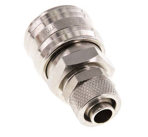 Diese Kupplung ist für Vakuumanwendungen geeignet. Der Betriebsdruckbereich beträgt -0,95 bis 35 bar. Die Steckdose ist für Temperaturen zwischen -20 und 100°C geeignet. Die Nenndurchflussmenge beträgt 1100 l/min. Der Dichtungswerkstoff ist NBR (Nitrilkautschuk). Das Gehäuse aus vernickeltem Messing ist mit einem vernickelten Oberflächenschutz versehen. Dieser DN 7,2 mm hat ein Europrofil und ist in Europa sehr beliebt.