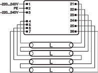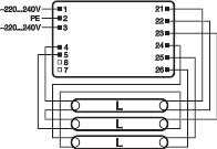 Elektronisches Steuergerät (ECG) entwickelt für 26mm Leuchtstofflampen, die mit einer 220-240V AC Stromversorgung betrieben werden. Merkmale sind optimierte Glühfadenvorheizung, automatische Abschaltung bei defekten Lampen und Lebensdauer-Schutz. Arbeitet bei 50/60 Hz mit einem Netzspannungsbereich von 198-264V. Erreicht die Energieeffizienzklasse A2 durch innovative Abschaltungstechnologie.