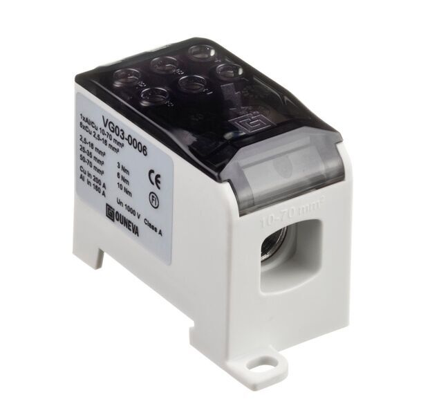 Ouneva Verteilerklemme, Nr. Leiterklemmen aus 6x 2,5-16, max. Stromstärke 200A, Anz. Leiterklemmen innen 1x 10-70, Leiterquerschnitt 70mm², 1-polig.