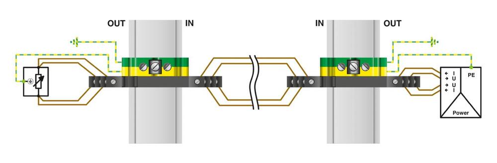 Überspannungsschutz in einem einteiligen 6,2 mm breiten DIN-Schienen-Modul für vier potentialfreie Signalleitungen.