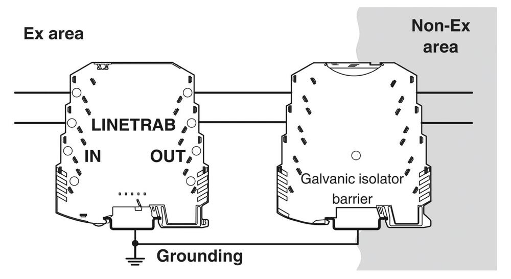 Überspannungsschutz in einem einteiligen 6,2 mm breiten Hutschienenmodul für einen potentialfreien Signalstromkreis in 2-Leitertechnik. Geprüft nach den folgenden Zündschutzarten im Ex-Bereich = Ex ia IIC / Ex iaD. HART-kompatibel.