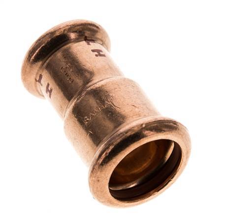 Dies ist ein Reduzierpressfitting aus einer Kupferlegierung. Die Armatur hat zwei Pressbuchsen. Die Anschlüsse 1 und 2 sind für ein Rohr mit einem Außendurchmesser von 15 mm und 18 mm ausgelegt. Die Armatur hat einen FKM-Dichtring. Der maximale Druck beträgt 16 bar (232 psi). Die Armatur ist für Temperaturen von -20 bis 200 °C (-4 bis 392 °F) geeignet. Vorübergehend kann die Höchsttemperatur +280 °C (536 °F) betragen. Die Einbaulänge beträgt 42 mm.