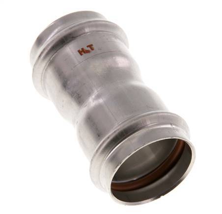 Dies ist ein gerader Pressfitting aus rostfreiem Stahl 1.4404. Die Armatur hat zwei Pressbuchsen. Die Anschlüsse 1 und 2 sind für ein Rohr mit einem Außendurchmesser von 35 mm ausgelegt. Die Armatur hat einen FKM-Dichtring. Der maximale Druck beträgt 25 bar (363 psi). Die Armatur ist für Temperaturen von -20 bis 200 °C (-4 bis 392 °F) geeignet. Vorübergehend kann die Höchsttemperatur +280 °C (536 °F) betragen. Die Einbaulänge beträgt 78 mm.