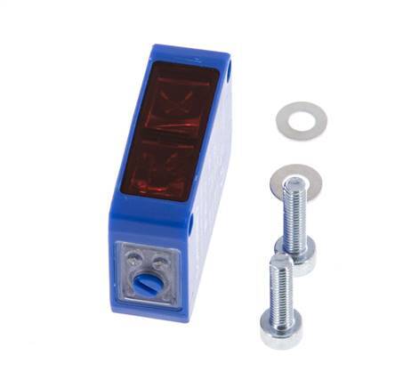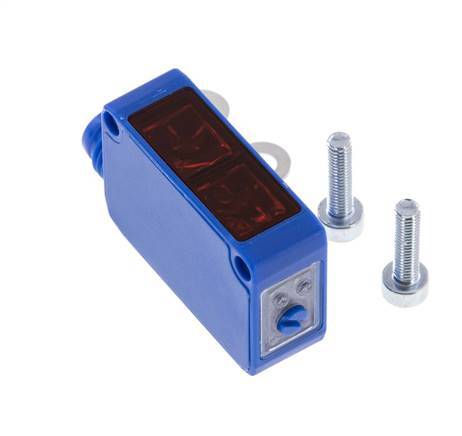 Bei der Reflexionslichtschranke sind Sender und Empfänger im gleichen Gehäuse integriert, ähnlich wie bei der Reflexionslichtschranke. Im Gegensatz zu retroreflektierenden Lichtschranken benötigt diese keinen Reflektor. Die Lichtreflexion eines Objekts wird vom Sensor ausgewertet. Wenn ein Objekt einen Lichtstrahl reflektiert, wird der Ausgang des Sensors mit dem Empfänger verbunden. Die Abtastabstände sind für ein Standardobjekt mit 90 % Rückstrahlung (weißes Papier) angegeben.