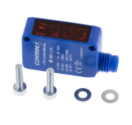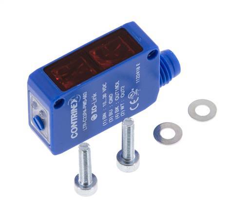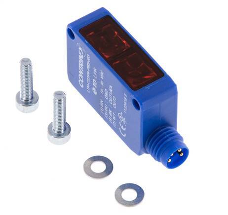 Diese Reflexionslichtschranke verfügt über einen Sender und einen Empfänger, die im selben Gehäuse integriert sind. Der Erfassungsbereich reicht von 3 bis 1500 mm und der maximale Schaltabstand beträgt 1300 mm. Er hat einen M8-Stecker mit 4 Pins. Umschaltmodus: PIN 4 - hellschaltend / IO-Link, PIN 2 - dunkelschaltend. Die Betriebsspannung beträgt 10 - 30 V DC und der Steuerausgang 100mA (PNP). Der Sensor ist IO-Link-fähig.