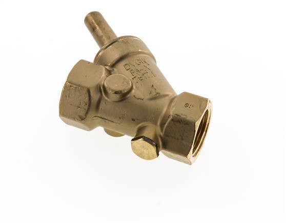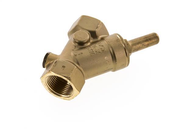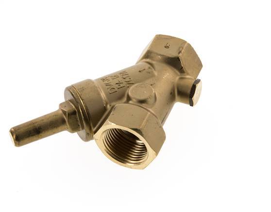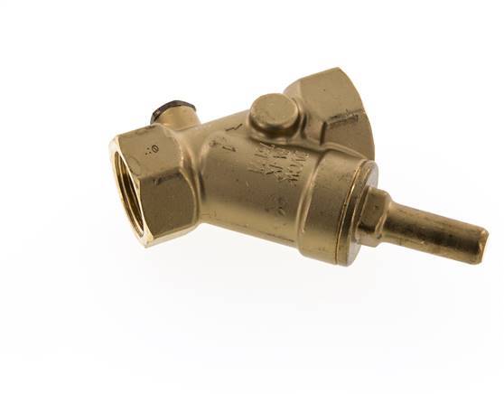 Innengewinde Rp 1 Zoll Y Rückschlagventil aus Messing mit einer NBR-Dichtung. Wenn der Druck unter den minimalen Öffnungsdruck fällt, schließt eine Feder das Ventil, um Rückfluss zu verhindern. Dieses Rückschlagventil kann horizontal oder vertikal installiert werden. Das Schrägsitz-Design führt zu einer höheren Durchflussrate als ein gleich großes Inline-Ventil. Die Schrägsitzform wird manchmal als 'Y-förmiges Rückschlagventil' oder Y Rückschlagventil bezeichnet. Der maximale Betriebsdruck beträgt 16 bar (232 psi). Das Ventil ist für Betriebstemperaturen zwischen -10 und 90 °C (14 und 194 °F) geeignet.