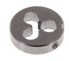 Dies ist eine runde Schneideisenform B zum Schneiden von M4-Außengewinden (Außengewinde). Er ist 5 mm dick und schneidet eine 0,5 mm große Gewindesteigung.