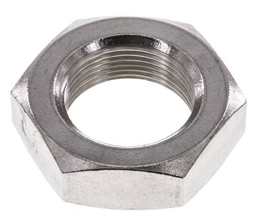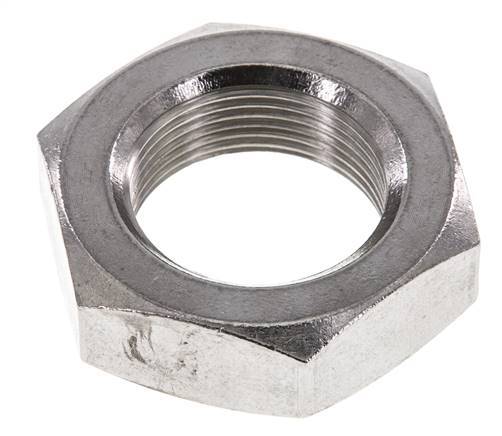 Diese Sechskant-Sicherungsmutter ist aus rostfreiem Stahl gefertigt und hat ein metrisches Gewinde. Eine Sicherungsmutter widersteht dem Lösen durch Vibrationen und Drehmoment.