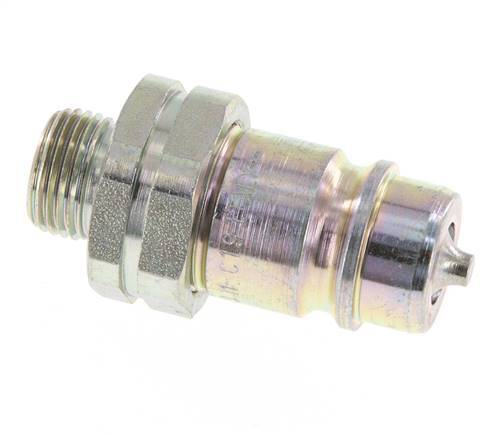 Hydraulischer Kupplungsstecker aus Stahl DN 12,5 mit Druckring 12 mm L (leicht). Sie werden in der Regel für Flüssigkeitsleitungen verwendet, um sichere Verbindungen schnell zu verbinden und zu trennen.
