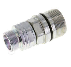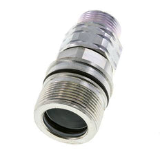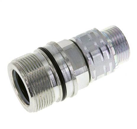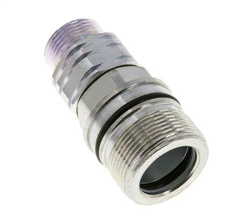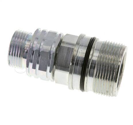 Hydraulische Kupplungsmuffe DN 20 aus Stahl mit 20 mm S (schwerem) Druckring. Sie werden in der Regel für Flüssigkeitsleitungen verwendet, um sichere Verbindungen schnell zu verbinden und zu trennen.