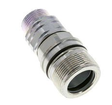 Schnellverschluss-Schraubkupplungen schließen beim Entkuppeln am Stecker und an der Muffe ab. Die Verbindung von Kupplungsmuffe und Kupplungsstecker erfolgt über eine Schraubverbindung mit einer Handmutter. Während des Kupplungsvorgangs wird die Ventilkammer versiegelt, bevor sich die Ventile öffnen. Beim Abkoppeln sind die Ventile bereits geschlossen, bevor die Verbindung aus der Dichtung gezogen werden kann. Kann bis zu 50 bar unter Druck gekoppelt werden.