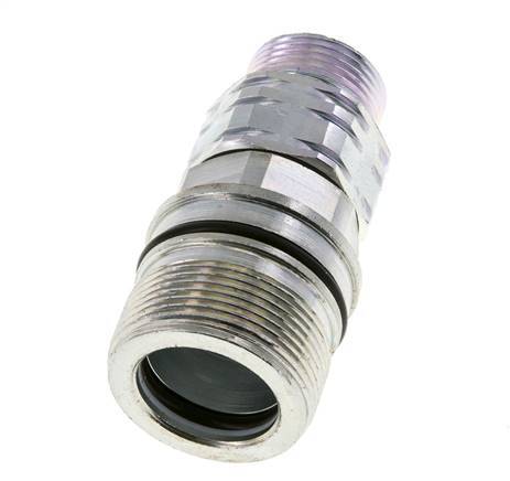 Hydraulische Kupplungsmuffe DN 20 aus Stahl mit 20 mm S (schwerem) Druckring. Der maximale Betriebsdruck beträgt 400 bar (5800 psi). Die Kupplung ist für Temperaturen von -20 bis 100 °C (-4 bis 212 °F) geeignet. Der Dichtungswerkstoff ist NBR. Die Kupplung entspricht der ISO 14541 und DIN EN ISO 8434-1 (DIN 2353).
