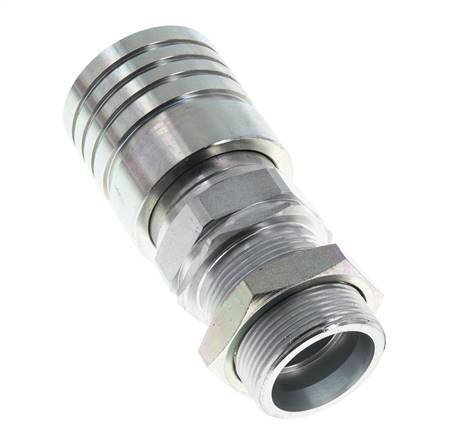 Hydraulische Kupplungsmuffe aus Stahl DN 25 mit 30 mm S (schwerem) Druckring und Schottgewinde. Sie werden in der Regel für Flüssigkeitsleitungen verwendet, um sichere Verbindungen schnell zu verbinden und zu trennen.