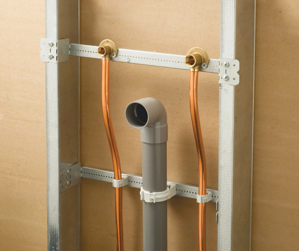 Professionelle teleskopische Halterung, die zum Befestigen von elektrischen Boxen und Leitungen zwischen Wandständern entwickelt wurde. Verfügt über gestempelte Zollmarkierungen und Bohrlöcher für eine präzise Installation. Verstellbar von 432 mm bis 660 mm (17" bis 26") zur Anpassung an nicht-standardmäßige Ständerabstände. Unterstützt mehrere Konfigurationen für die Befestigung von Boxen oder Leitungen für eine effiziente Installation in Trockenbaukonstruktionen.