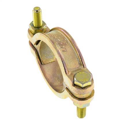 Schlauchschelle für Kompressorklauenkupplungen (DIN 20039A). Hergestellt aus verformbarem Gusseisen. Geeignet für einen Schlauchdurchmesser zwischen 56-72 mm. Die Schlauchschelle besteht aus zwei Teilen, die mit zwei Bolzen um den Schlauch geklemmt werden. Diese Schlauchschellen sind für die Verwendung mit Kompressor-Krallenkupplungen vorgesehen.