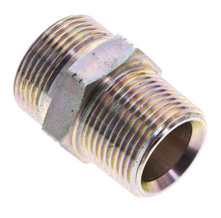UN 1-7/16''-12 x 1'' NPT Verzinkter Stahl Doppelnippel ORFS 400 Bar - Hydraulisch