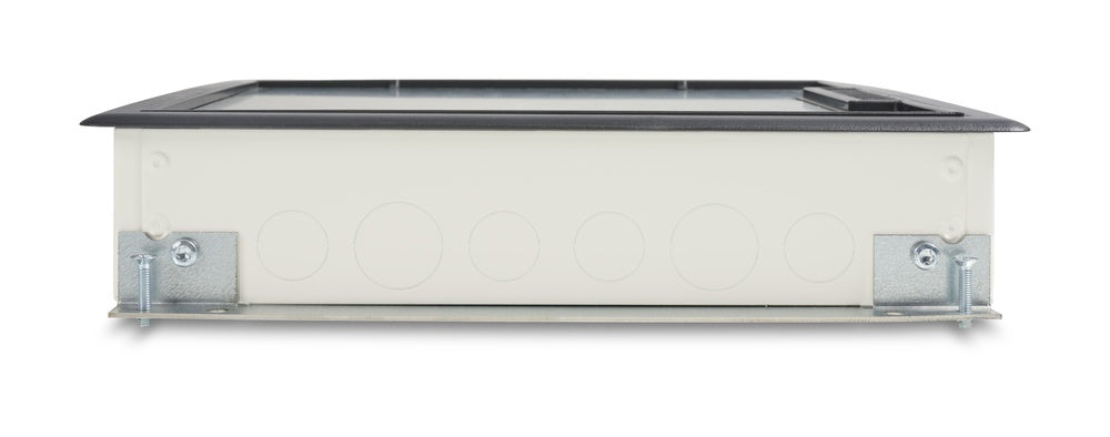 Professionelle Stromverteilungskasten mit 4 230V Steckdosen und 8 RJ45 Netzwerkanschlüssen. Enthält eine Abdeckung mit einer Einbautiefe von 4 mm und einem Kunststoffbefestigungsrand für eine sichere Installation und zuverlässigen Betrieb.