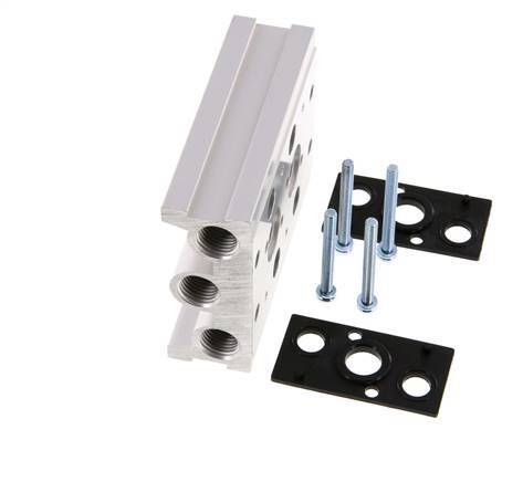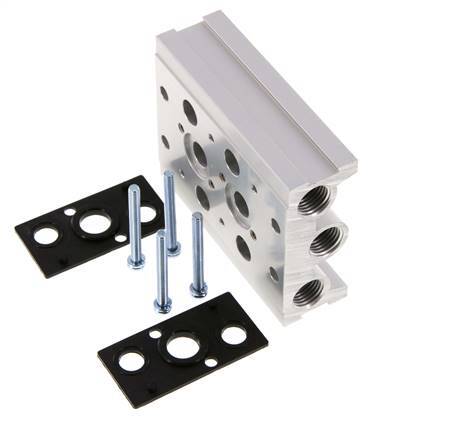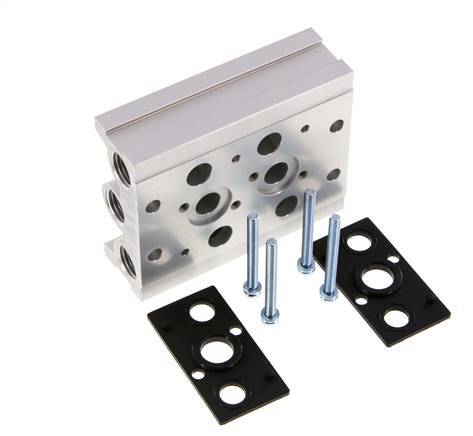 Starker und leichter Verteiler für bis zu 2 pneumatische Magnetventile der YPC SF4000 series. Serie. Inklusive Gummidichtungen und Schrauben zur Montage der Ventile. Nicht benutzte Stationen können durch Sperrplatten (separat erhältlich) verschlossen werden. Dieser Verteiler ist ein effizienter Weg, um Schläuche, Armaturen und Befestigungen zu reduzieren, aber auch um die Installation und Wartung zu vereinfachen.