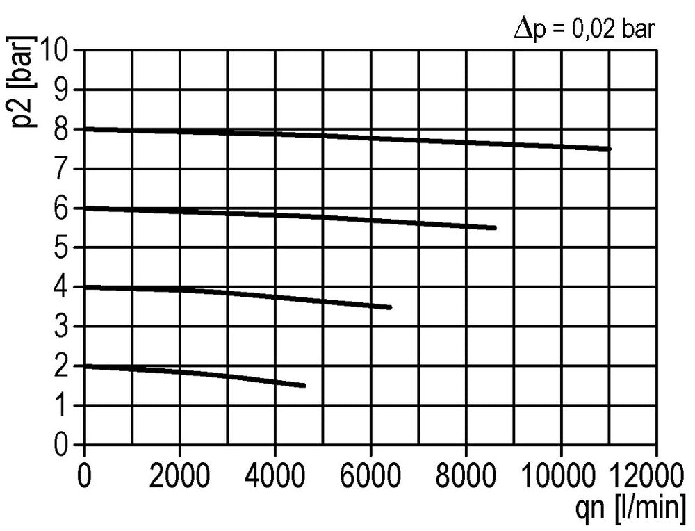 Der Filter entfernt Wasser, Schmutz und andere schädliche Partikel, die größer als 0,3 Mikrometer sind. Der Filter entfernt Wasser, Schmutz und andere schädliche Partikel für Ihr Luftsystem. Dieses Modell hat G 1-Zoll-Anschlüsse. Die maximale Durchflussmenge beträgt 1900 l/min. Bitte beachten Sie, dass die maximale Durchflussmenge allein nicht ausreicht, um die richtige Dimensionierung vorzunehmen. Verwenden Sie die Durchflusskurve, um festzustellen, ob der Druckabfall innerhalb Ihres erwarteten Durchflussbereichs akzeptabel ist. Die Durchflusskurve zeigt die Durchflussmenge für einen bestimmten Eingangsdruck bei verschiedenen Ausgangsdrücken. Für jeden Ausgangsdruck ist ersichtlich, wie sich der Druck mit zunehmender Durchflussmenge verändert. Es wird empfohlen, das Gerät im flachen Bereich der Kurve zu verwenden und nicht am Anfang oder am Ende der Kurve.