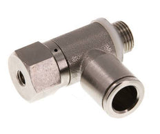 Dies ist ein vorgesteuertes Rückschlagventil aus vernickeltem Messing. Anschluss 1 hat ein G 1/8-Zoll-Außengewinde und Anschluss 2 einen 8-mm-Steckanschluss. Außerdem verfügt er über einen Betätigungsanschluss mit Innengewinde M 5 (Rückschlagventil). Die Rückschlagventilfunktion kann für einen kurzen Zwischenstopp des Antriebs genutzt werden. Wenn am Anschluss M 5 ein Steuerdruck anliegt, kann der Durchfluss zwischen den Anschlüssen 1 und 2 in beide Richtungen erfolgen. Liegt am Anschluss M 5 kein Steuerdruck an, kann der Durchfluss nur vom Anschluss 2 zum Anschluss 1 erfolgen. Er verfügt über eine NBR-Dichtung, die ihn für Anwendungen in einem Temperaturbereich von -20 bis 80 °C (-4 bis 176 °F) geeignet macht. Der Betriebsdruckbereich beträgt 0,5 bis 10 bar (7 bis 145 psi). Auf dem Armaturenkörper ist ein Pfeil angebracht, der die Durchflussrichtung angibt.